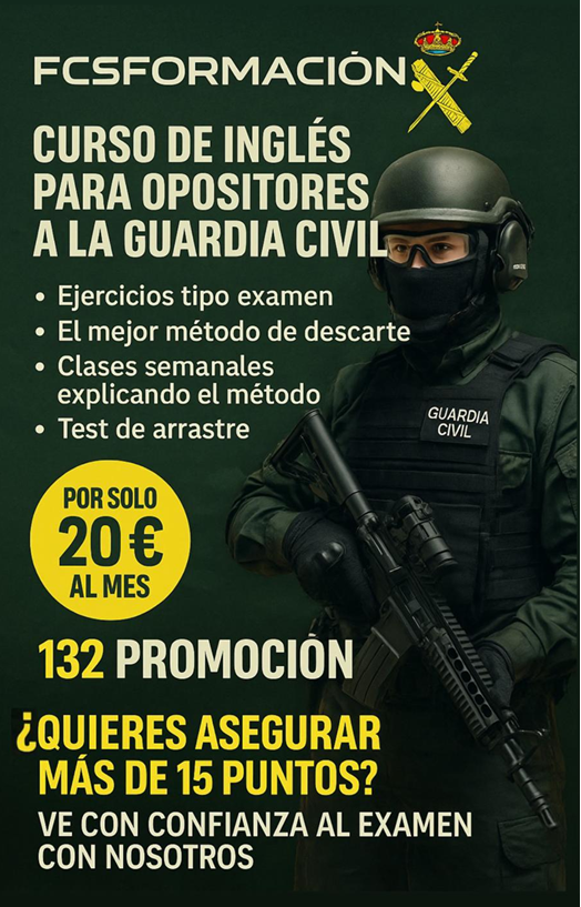 CURSO ONLINE sólo Inglés (Escala de Guardias y escala Suboficiales): 20 euros/mes. (ANUAL (180 EUROS)).
