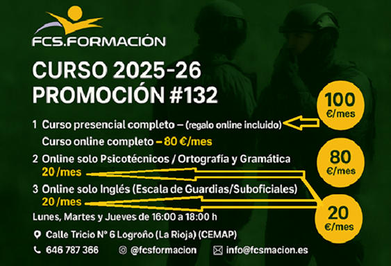 FCSFORMACION ES UNA ACADEMIA PRESENCIAL/ONLINE DE LA GUARDIA CIVIL
